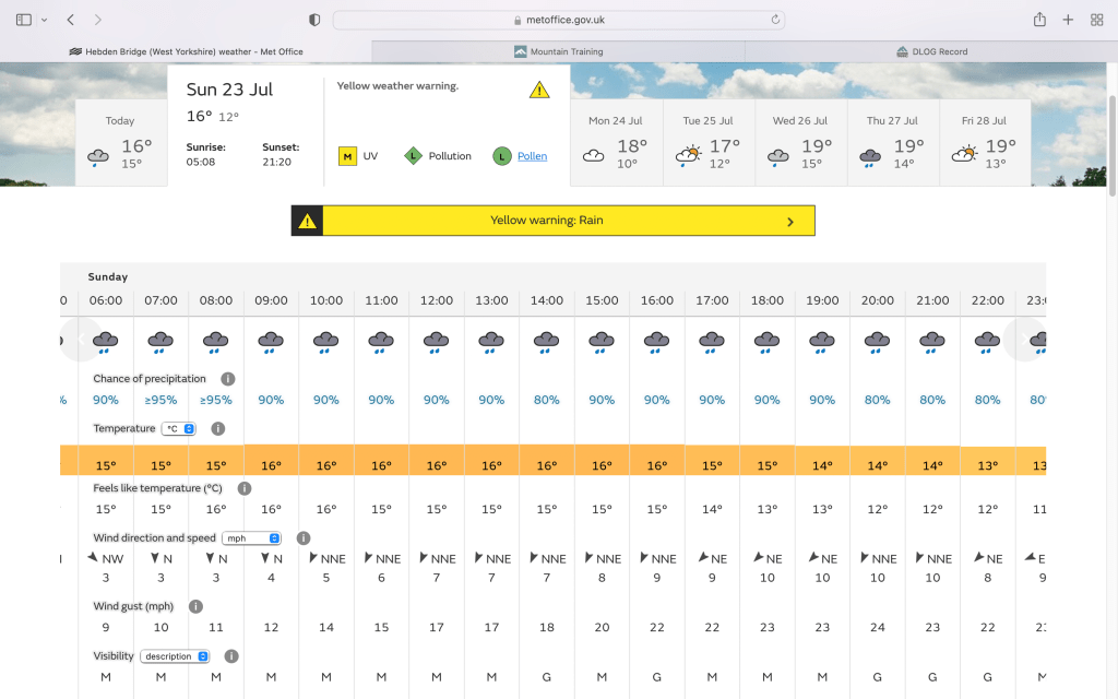 The Calder Valley is glacially formed, with generous layers of dark gritstone that help to give it a distinctive feel of moody gloom in poor weather. I certainly had that on Sunday, with the weather forecast below: