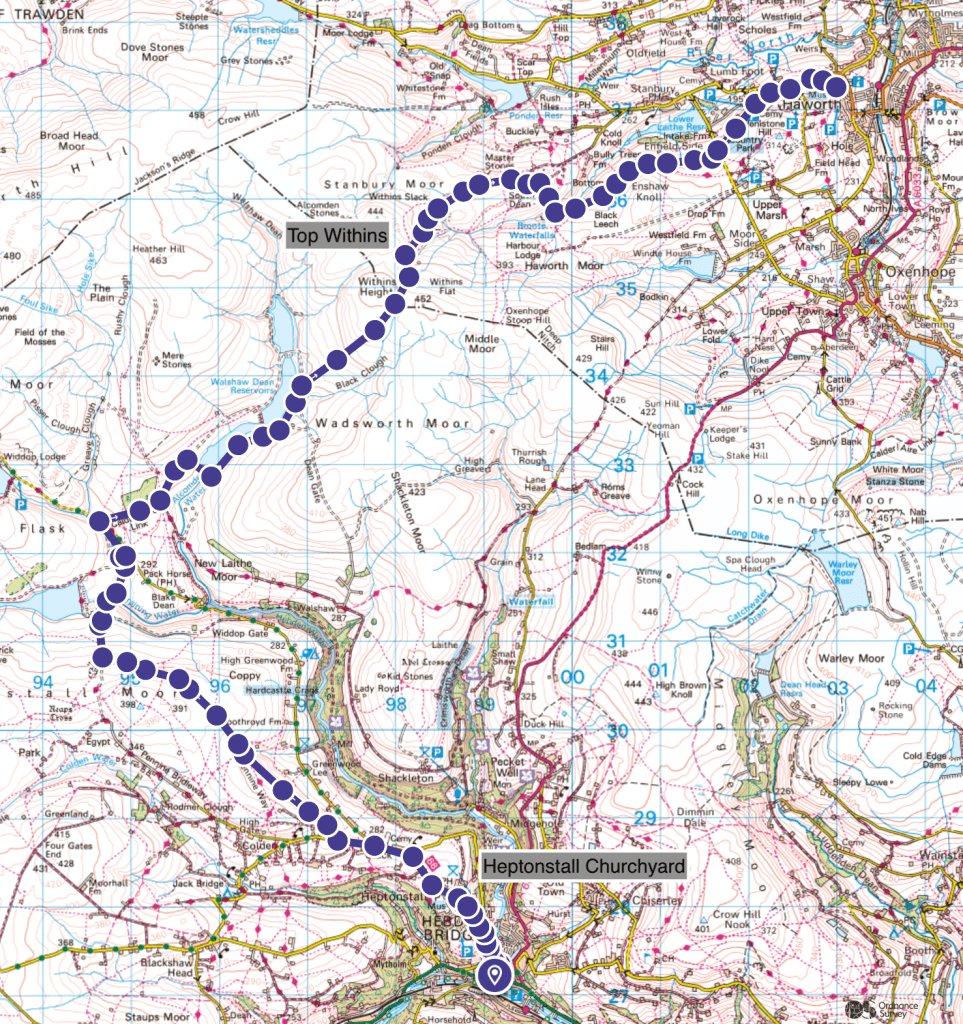This is the Calder Are Link and Pennine Way together. It is a fantastic path, taking you to Walshaw Dean Reservoir systems, and up onto the start of what many now call simply the ‘Bronte Moors’.