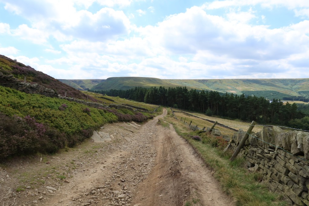This is a very well preserved old road that I am assuming used to connect farming communities all the way to Manchester. I have once seen cattle right in the middle of the path however I think this was due to someone accidentally leaving a gate open. It should be free as a public footpath to enjoy with all gates closed. This is part of a working farm though. If cattle are on the path, there is a workaround route going via Digley Reservoir but it is a very long extra hike, so have not included it here.