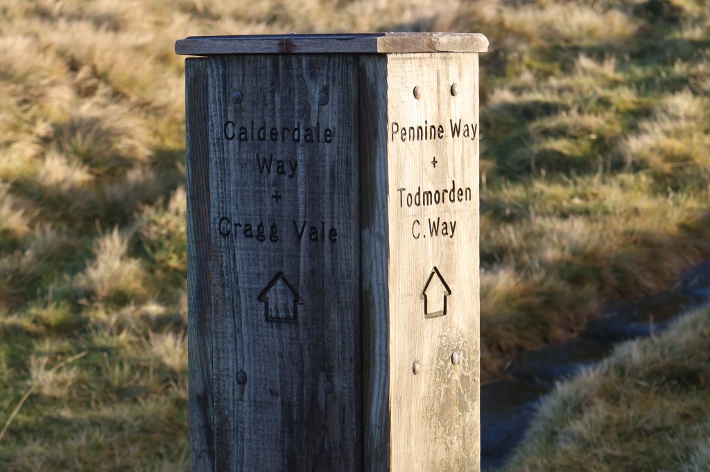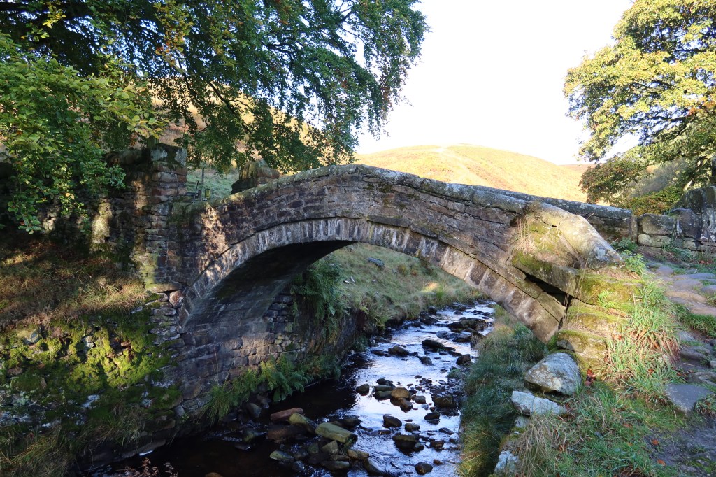 Shortly after this, take a public footpath through a small gate on your left, and this will quickly lead you to a packhorse bridge in the photo at the top of this page. Once over the bridge, keep right and follow the path over a small stream (challenging crossing in wet conditions) and up the hillside. Following this path will lead you once again to the Pennine Way which, if you are walking this trail clockwise, you last saw near Blakeley Reservoir.