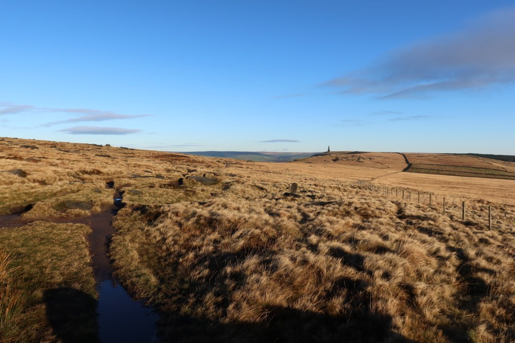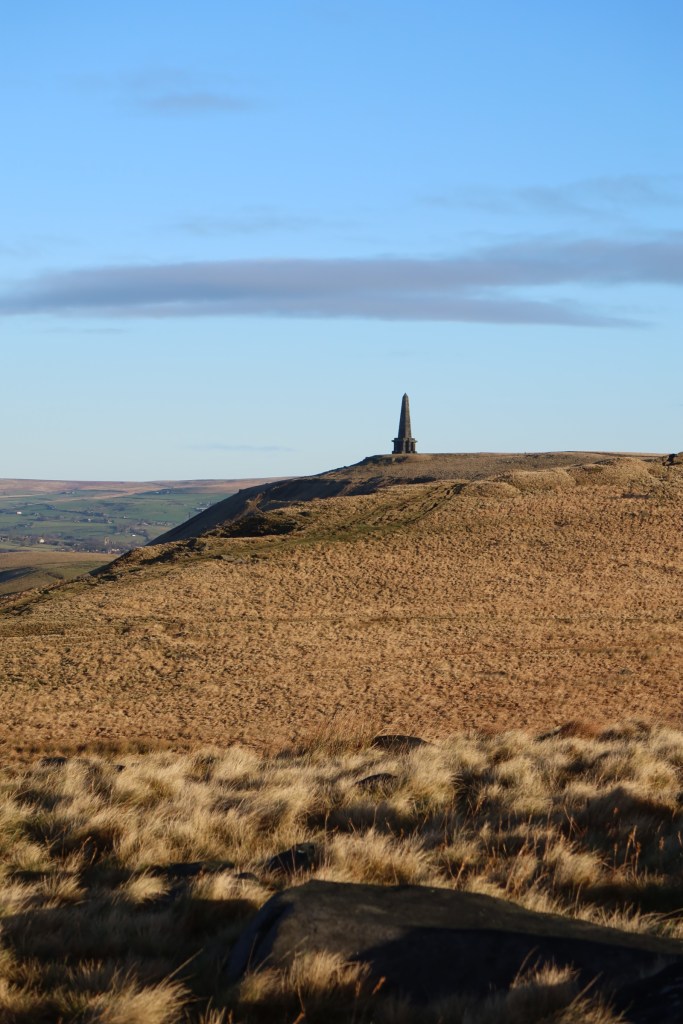 Not long now until your reach Stoodley Pike. What you see is not the original monument, but a later rebuild after the first was burned down after a lightning strike. Although it makes for a well-known landmark on a hike, I am very surprised at how popular it is to gather and eat lunch there etc. It all feels very oppressive and I rarely linger there for long – I prefer to just get on with the walk.