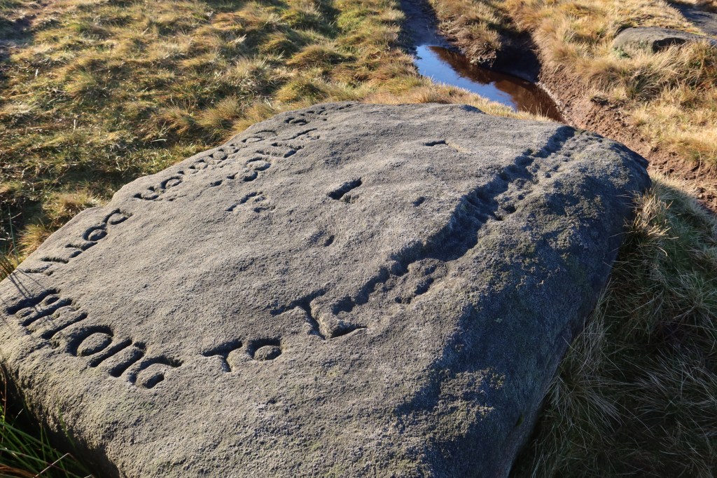 According to Mary Ann Ochota in her brilliant book, ‘Hidden Histories’, this stone indicates a boundary for someone’s peat-digging area in the C17th and C18th. The inscription on the stone has been sabotaged at one point; half remains very clear, and half not so much.