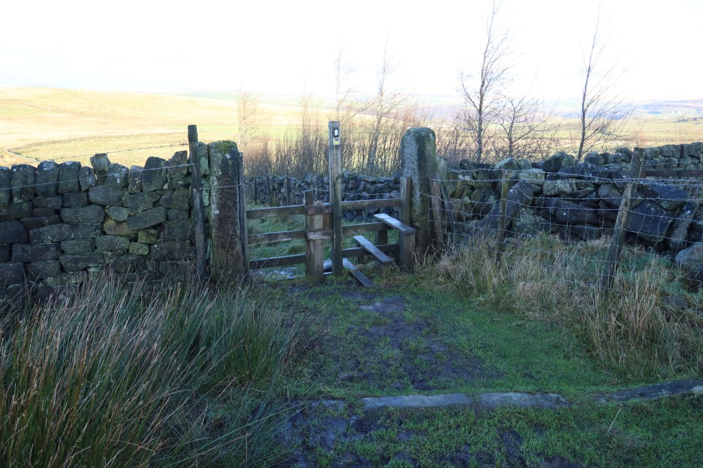 This heads down and to the right on a well made track, at the end of which you arrive at another crossroads. Keep straight on, walk by the dry stone wall on your right, over a stile, and down a muddy track aiming fro a second stile on your right at the bottom. Again, follow signs for the Pennine Way.