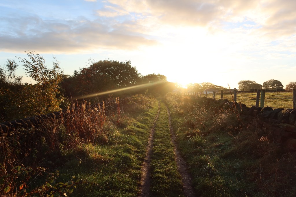 Continue on to Allums Lane, then shortly after a T junction where you should turn right, back onto the Dales Way. This emerges at a road, turn left, and head downhill. After a ten minute walk on the road, you will descend sharply down to the left, and on your right at this point you will see a small track with a public footpath sign. You need to follow this path through the start of Harewood Estate.