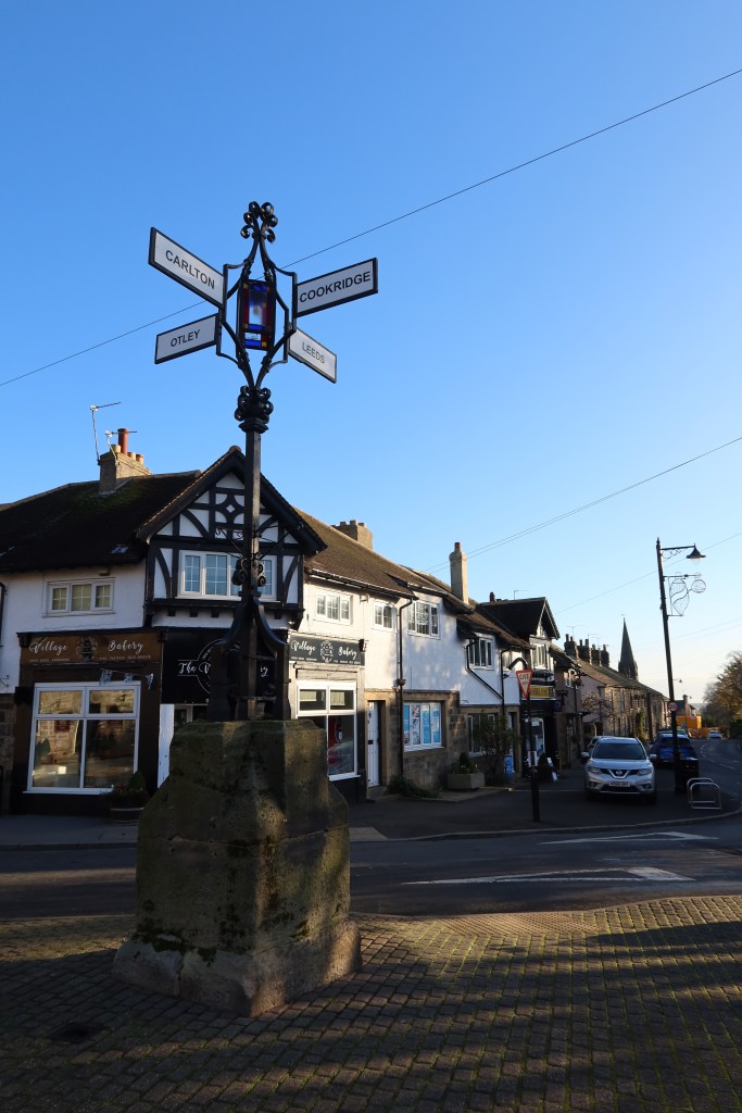 Bramhope is included in the Pevsner guide to West Yorkshire and is mostly noted for its C17th church heritage. If you were to head left at the cross roads you would arrive at a Puritan Chapel dating from 1649, according to the guide ‘one of the most valuable in England’. Worth a short detour.