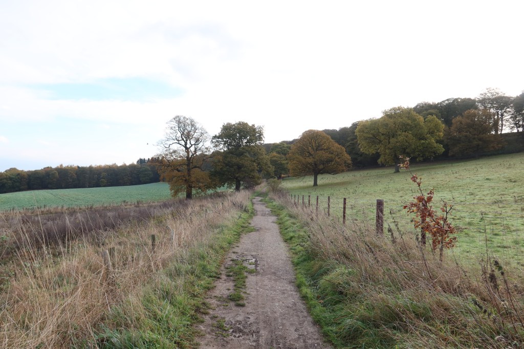 All you have to do now, is follow the signs for the Leeds Country Way and you will pass through Biggins Farm, again another non-threatening farmyard. There are large stacks of hay on one barn to the left and some horses in a paddock. A few chickens scratch around for food and I have occasionally seen police horses being ridden on the bridleway. But no dogs, cattle or anything that could cause serious anxiety.