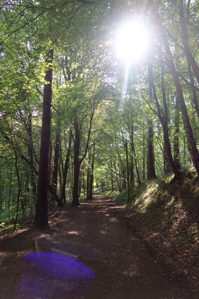 This is quite a long path through the woodland, as the Estate itself is huge. Luckily there are no real navigational problems, and at the first major crossroads you have a choice – keep following signs for the Leeds Country Way, or take a 90 minute history detour. Instructions below in brown.