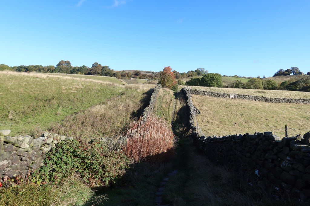 With your back to the mill, head towards Robert’s Park and the canal towpath. Instead of following the canal, go over the bridge that spans the river, with a weir to your right. This section can get quite busy at times, so you may have to take care among the many bikes, running children and dogs as locals head about their weekend leisure activities. Walk over to the far end of the park and exit at the northern side, opposite Titus Salt School. Head left on Higher Coach Road and keep walking straight on for quite a distance.