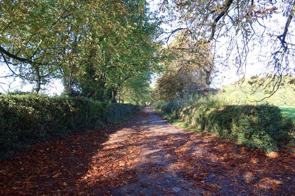 You might notice a public footpath sign on your right just after you emerge and take the road. This is a viable option if you don’t mind farm animals and horses which this entire route purposefully avoids, although to regain the route we are following you still have a very scary piece of road crossing of equal length the other side so it’s really a case of ‘six and two threes’ here.