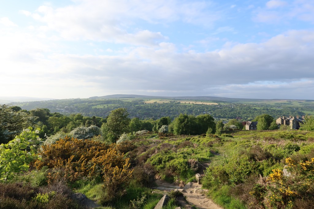 The path will wind downhill to the left, becoming rockier as it does so. There are one or two sections where you may need to go slower than usual and use your hands occasionally but the path is generally fine, even in bad weather. After these difficulties, you will emerge at the cross roads of Rocky Valley, just above the town of Ilkley. If you are in the right place you will see a white house and a tree with some benches around it just in front of you.